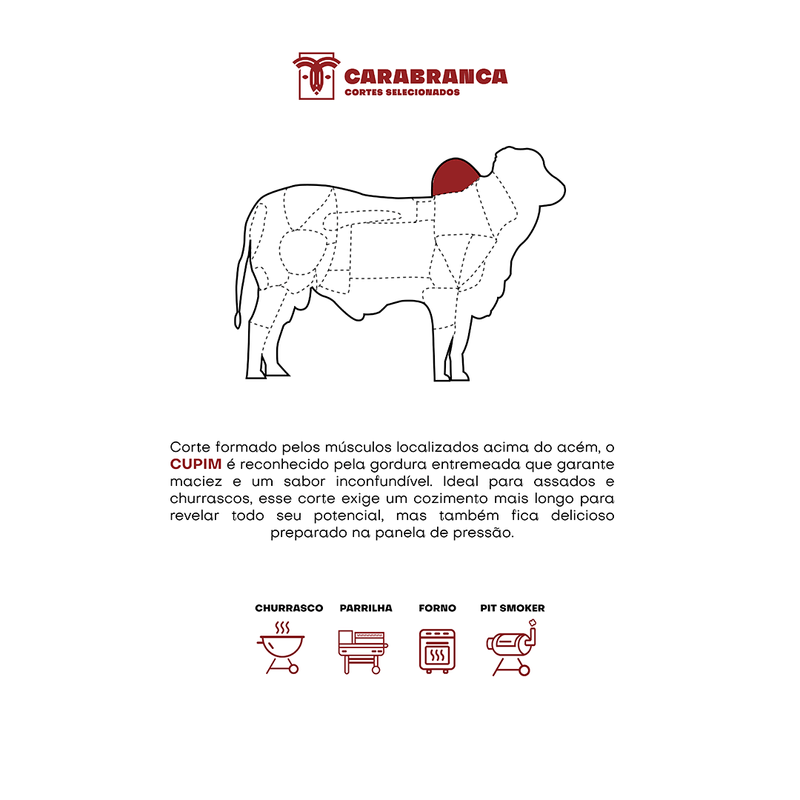 O Cupim CARABRANCA é um corte clássico, retirado da parte superior do pescoço do boi Nelore (a raça que é símbolo da pecuária nacional).