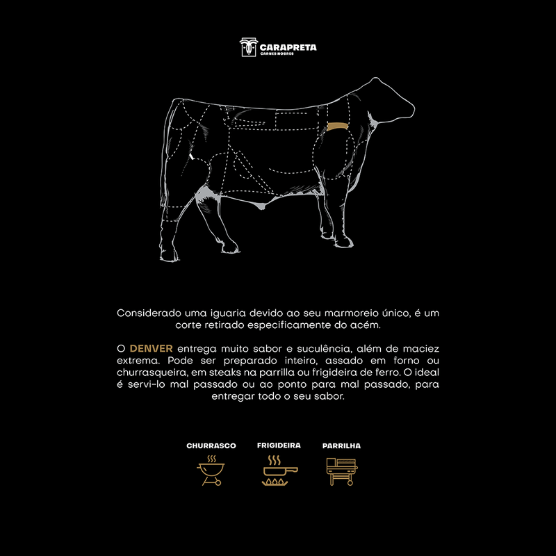 O Steak Denver Wagyu é um corte premium retirado da parte dianteira do boi Wagyu, perfeito para quem busca uma carne de alto padrão. Com sua incrível marmorização, o steak oferece uma textura macia, suculenta e um sabor intenso que vai elevar qualquer refeição. Ideal para ser grelhado ou selado na frigideira, o Denver Wagyu se destaca pela sua suculência e maciez, proporcionando uma experiência gastronômica de luxo, seja para um jantar especial ou para um churrasco sofisticado.